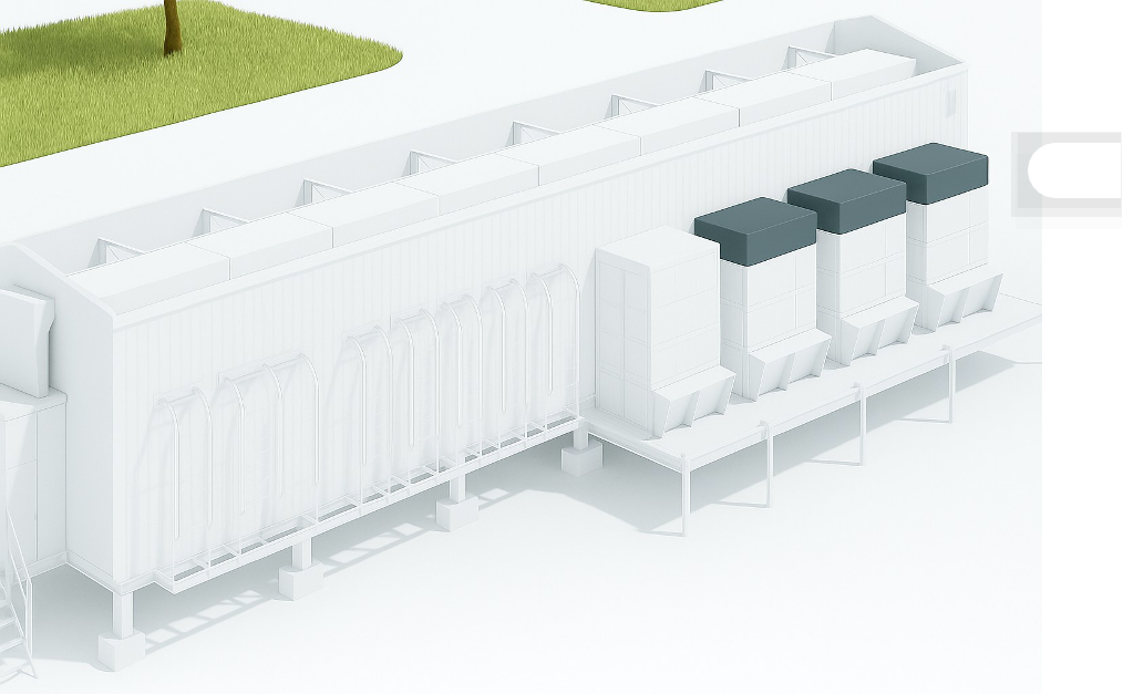 ● Pre-engineered structures with integrated HVAC, lighting, and fire protection